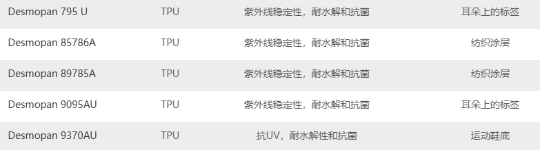 科思创 Desmopan TPU材料应用于纺织业的产品牌号如下: