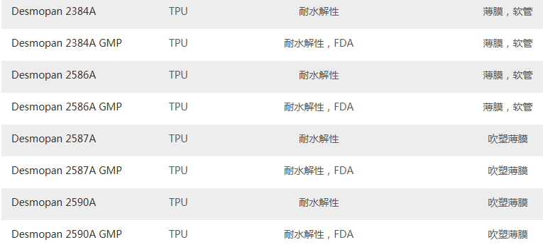 科思创 Desmopan TPU材料 应用于薄膜牌号及应用: