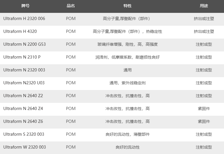 巴斯夫 Ultraform POM产品牌号: