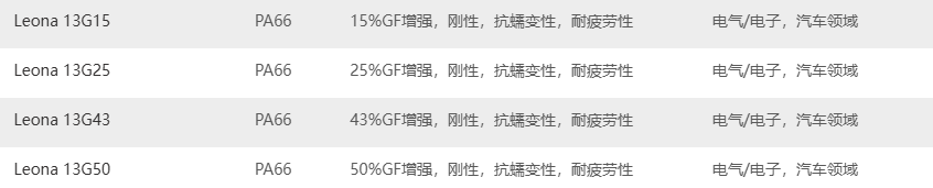 旭化成 Leona PA66 - 系列产品尼龙66、以及大量共聚物尼龙。此外还为客户的各种需求和应用提供各种等级的树脂,其中包括非增强级、增强级、阻燃级、抗磨擦磨耗级、高冲击级、碳纤增强,导电性。PA66更广泛应用于汽车工业、仪器壳体以及其它需要有抗冲击性和高强度要求的产品。
