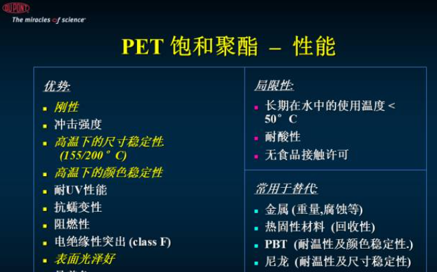 杜邦的Rynite PET产品是全部为改性等级的,没有非填充切片级材料。